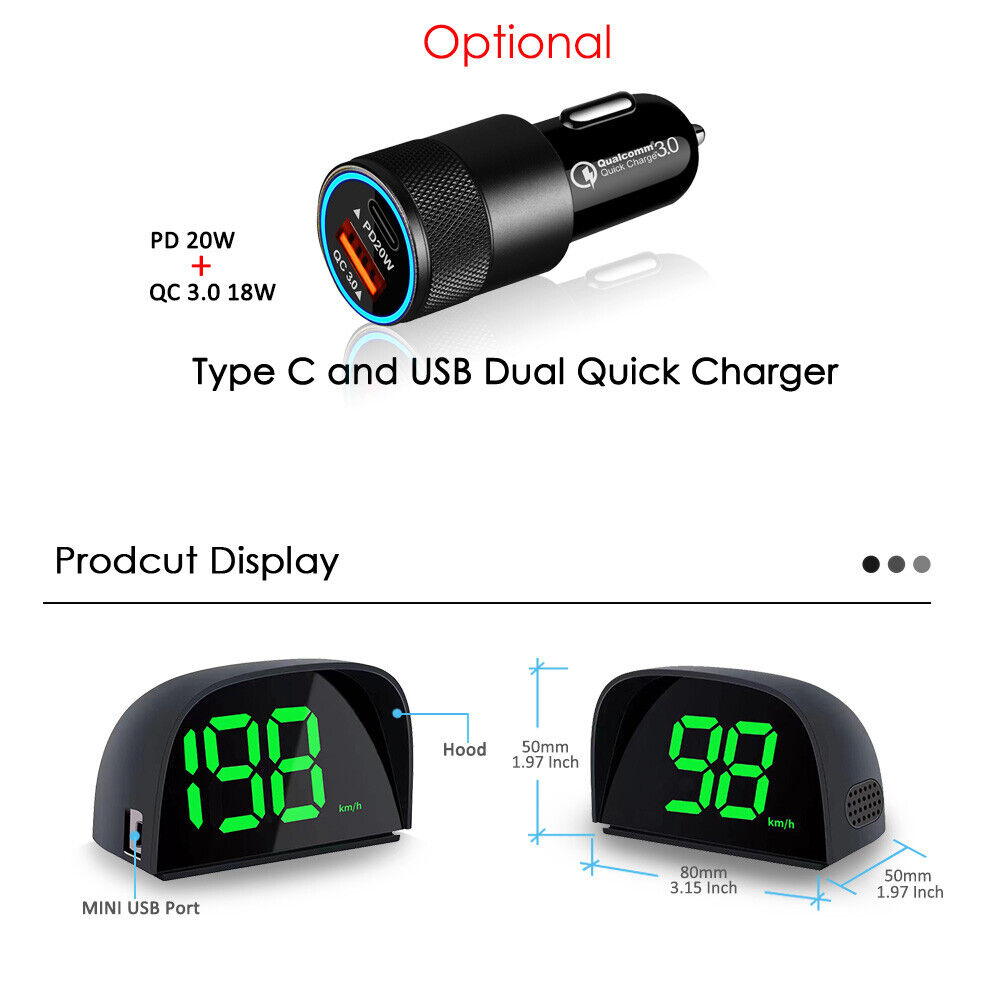 2023 New GPS HUD Digital Speedometer Display 2-Color Plug and Play Big Font