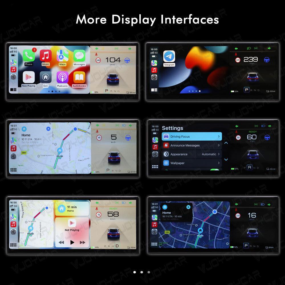 Fully screen to display car information in real-time, such as speed, turning light, gear position, battery level, endurance mileage and total mileage, high and lower beam, belt reminding, battery left reminding, driving distance etc. Display whatever you want a Model 3 / Y display. Keep eyes ahead while driving!
