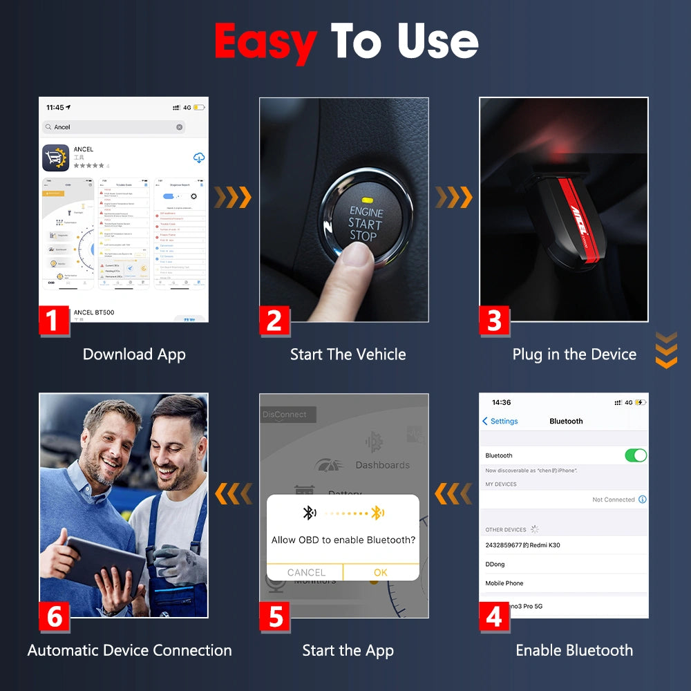 Easily connect the BD500 to your iOS or Android phone via Bluetooth. Simply download the “ANCEL” App and begin scanning your vehicle in seconds — no complex setup or extra tools needed.