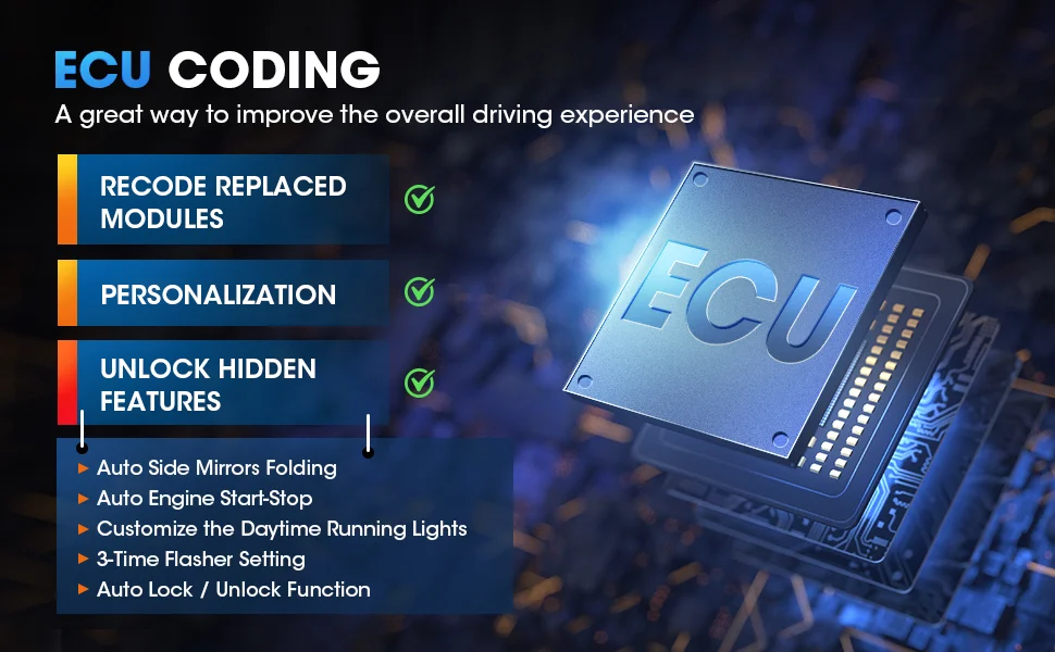the ECU Coding feature, which is not available in conventional code readers, to allow you: