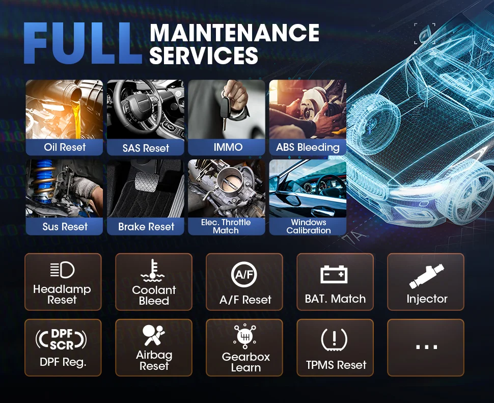 You can find 15 kinds of commonly used reset functions in the reset menu, and other special functions in the car brand diagnostic softwares menu.