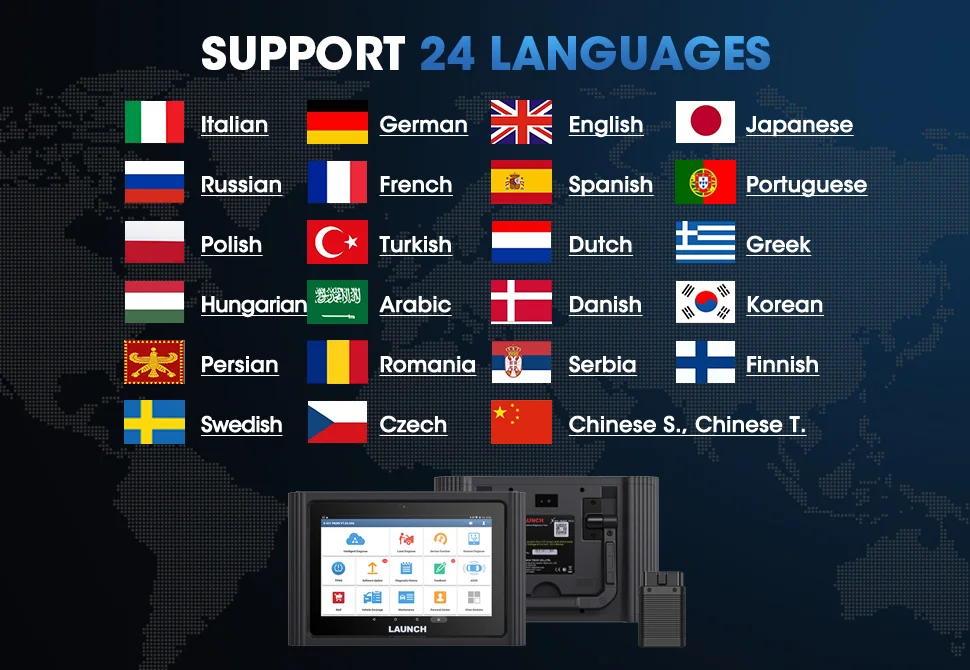 English, Italian, German, Japanese, Russian, French, Spanish, Portuguese, Polish, Turkey, Dutch, Greek,Hungarian, Arabic, Denish, Korean, Farsi, Romanian, Serbian, Finish, Swedish, Czech.