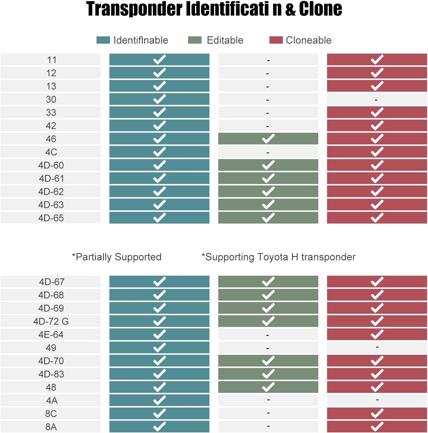 Identifies most immobilizer transponders in the market.