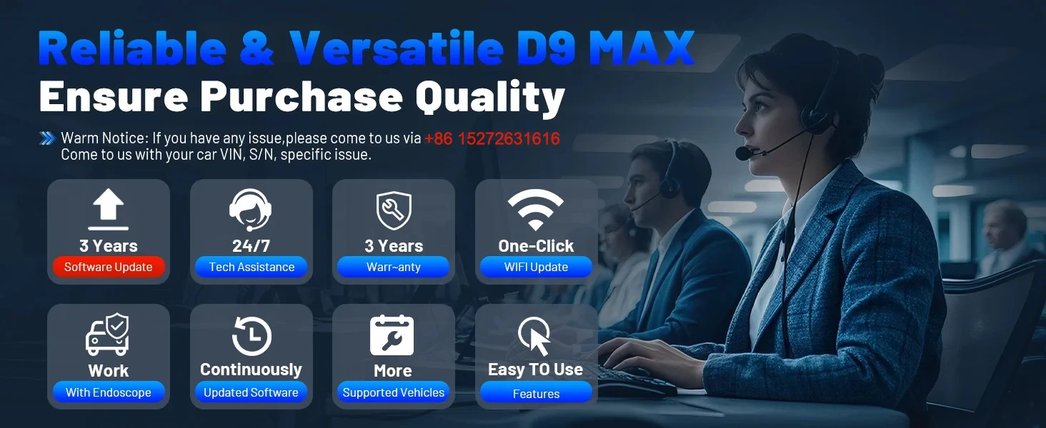 XTOOL D9 MAX Bluetooth Diagnostic Tool is equipped with one-click online update and 3-year free update to get the latest software, which can support more functions and new model coverage. Even after the free update has expired, the device will still work normally. If you encounter any problems, our technicians will serve you for free for life.