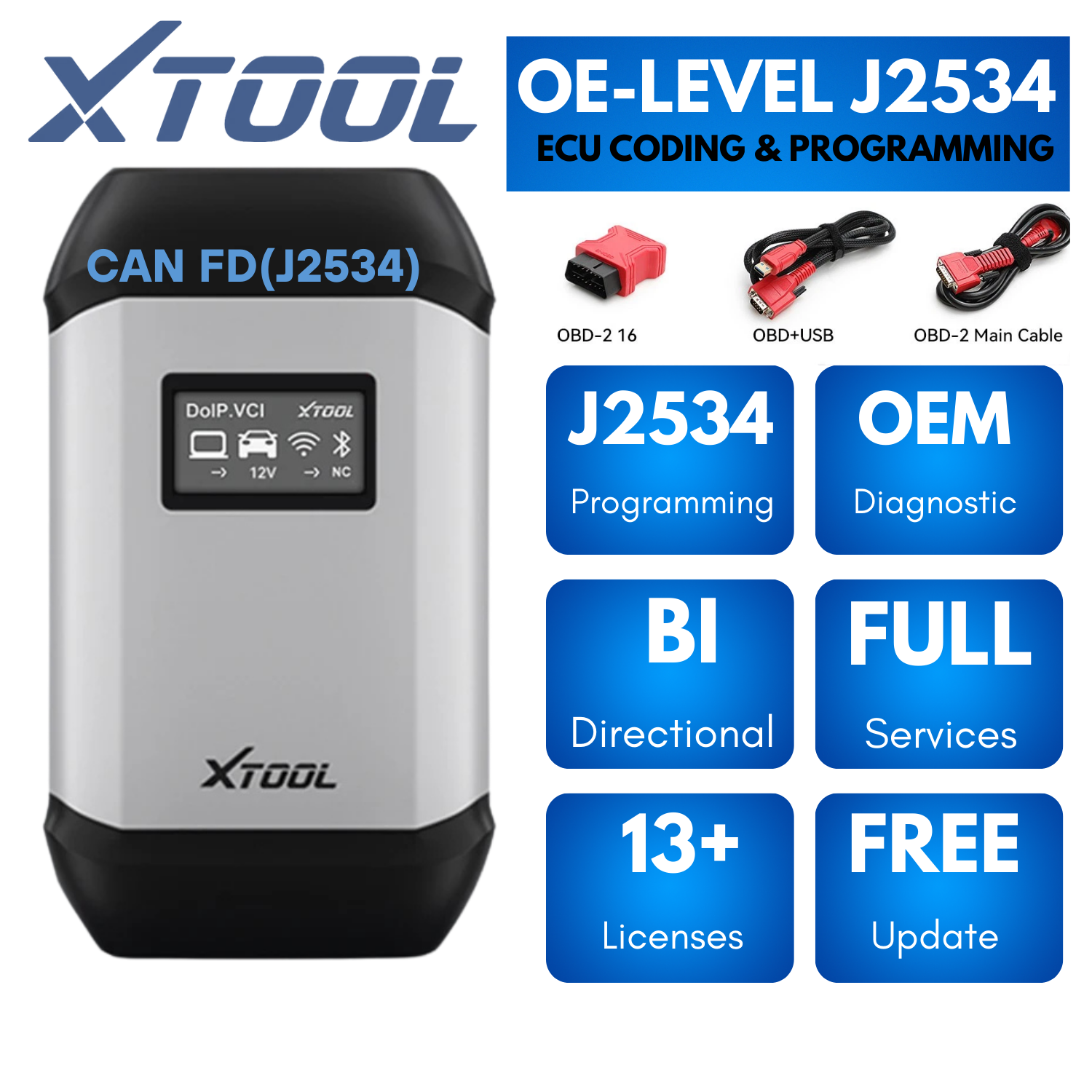 The XTOOL J2534X XVCI MAX is an all-in-one professional diagnostic and J2534 programming interface designed for advanced vehicle diagnostics, ECU coding, programming, bi-directional control, and IMMO key functions across 13 major vehicle brands.