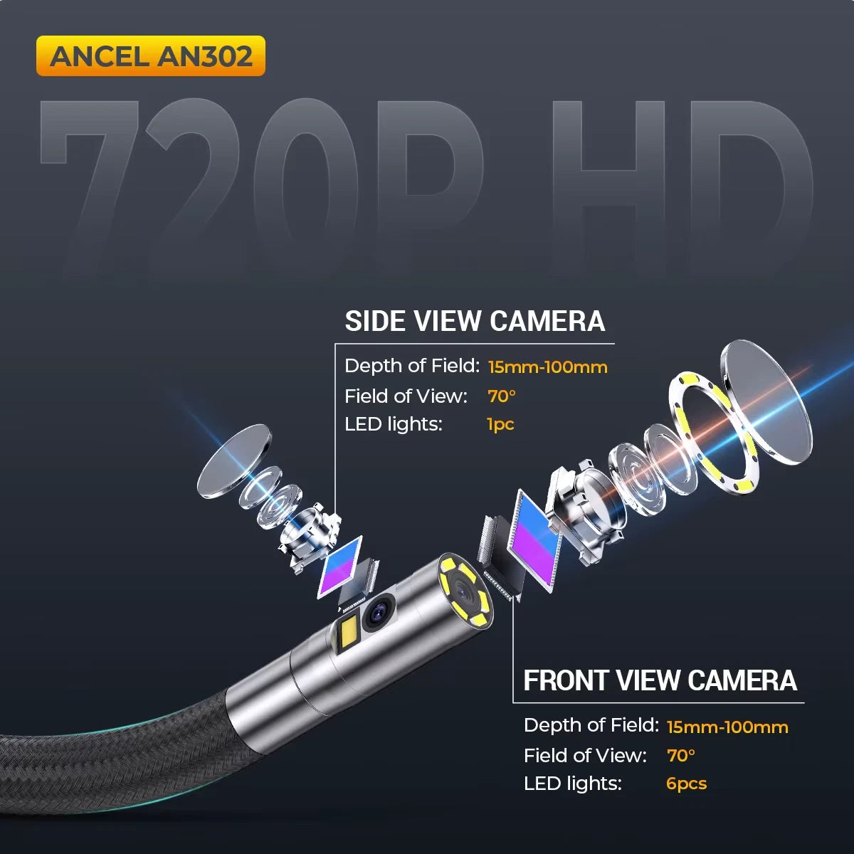 ANCEL AN302 4.3inch Dual-lens Industrial Endoscope 6.2mm IPS Endoscope Inspection Camera Automotive Digital Borescope with light