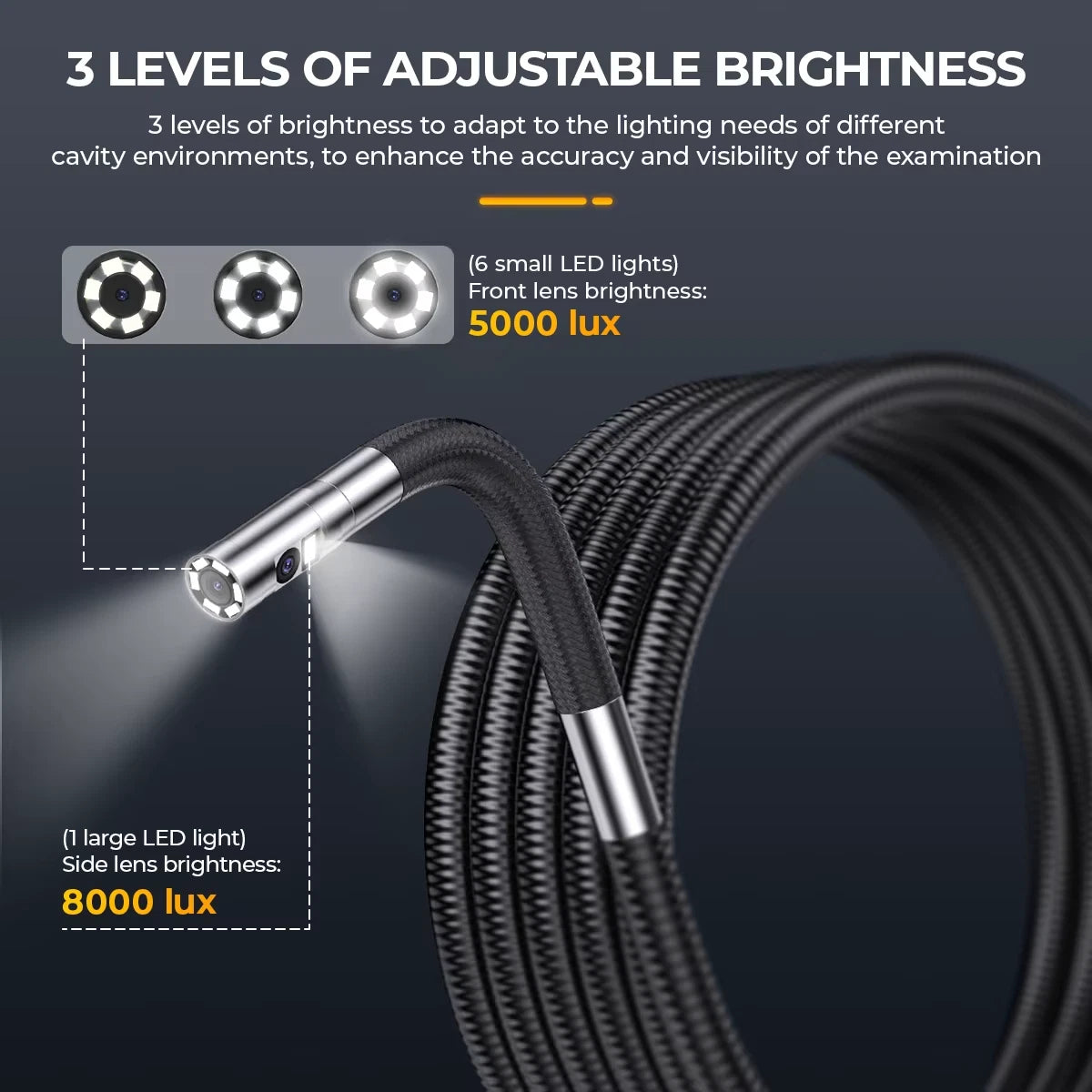 3 levels of brightness to adapt to the lighting needs of different cavity environments, to enhance the accuracy and visibility of the examination
